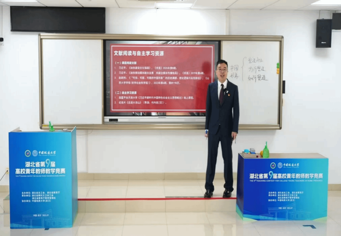 7月12日,湖北省第九届高校青年教师教学竞赛决赛在中国地质大学(武汉)落幕。本次决赛汇聚了全省54所高校的145名青年教师教学能手,我院孔浩老师在思想政治课竞赛组进行角逐,最终荣获二等奖。