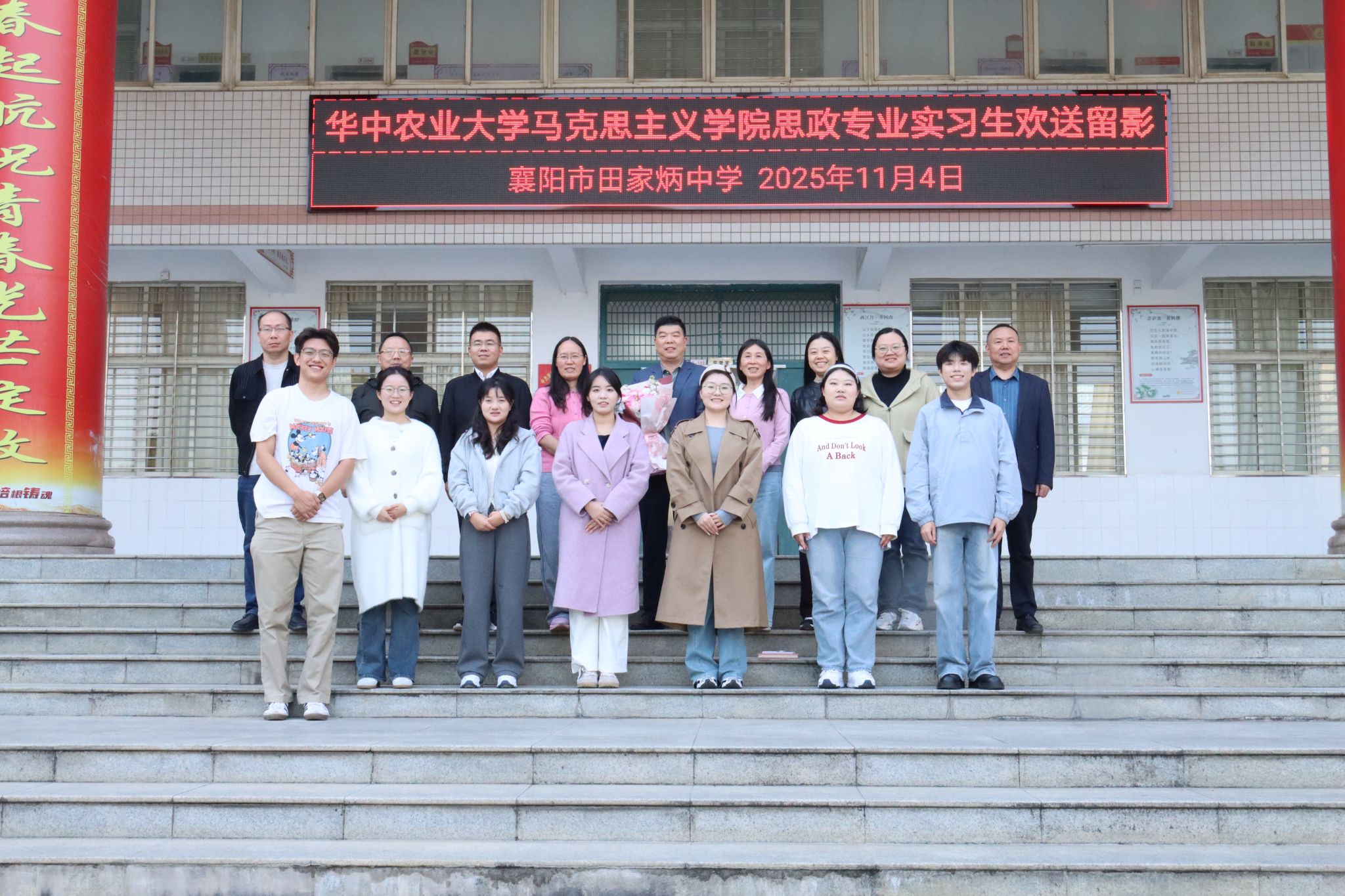 11月4日下午,实习生欢送会在襄阳市田家炳中学科技楼一楼会议室举行。田家炳中学党委书记秦选峰、副校长布中保、部分研究生专业实习指导教师,必赢242net官网教授李凤兰、李恺,实习小组秘书叶圣萱老师及7名思政专业实习生出席会议。会议由晏丽老师主持并作为指导老师发言。晏丽老师高度充分肯定了7名研究生在过去8周的出色表现,她表示实习生们的成长有目共睹,不仅为学校带来了新气象、注入了新活力,展现了当代研究生的良好精神风貌,更以其深厚的教育情怀和乐于探究的学习精神影响了广大师生,随后王宁作为实习生代表分享了教育教学实践心得。李凤兰老师表示,同学们在实习中不仅收获专业技能,更与田中师生建立深厚情感、理解了教育的意义,并感谢田中对华农必赢242net官网人才培养的支持,李恺老师也充分肯定了同学们在能力、素养等方面的进步。最后,秦选峰书记表达了对研究生专业实习及大中小学思政教育一体化顺利进行的祝贺、感谢与期待,他强调教育和引导学生做到学以致用、知行合一是育人的根本,华农必赢242net官网与田家炳中学依托一体化平台深度合作、情谊深厚,并诚挚欢迎华农必赢242net官网实习生在田中30周年校庆之际重返校园。