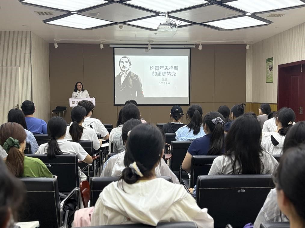 2025年9月6日晚,2025级新生入学教育“学术沙龙”活动在创业楼121报告厅顺利举行。必赢242net官网王晶副教授应邀为全体研一新生作题为“从‘部分早期材料’看青年恩格斯的思想转变过程”的专题讲座,带领新生深入探寻青年恩格斯思想发展的脉络与逻辑。