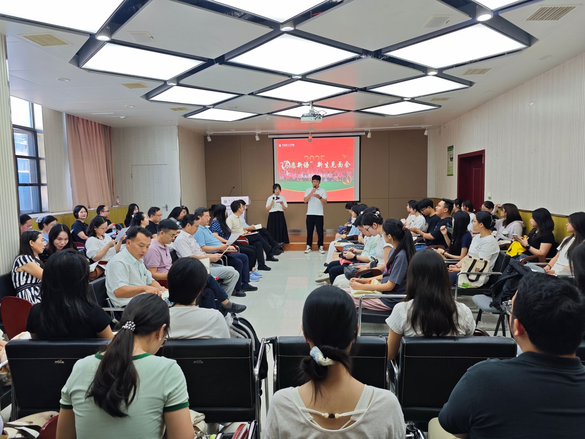 9月5日上午,“马愿新语”2025级研究生新生见面会在创业楼121报告厅举行,学院院领导班子成员、研究生导师和2025级全体新生参加见面会。会议由马克思主义中国化研究专业2024级的刘锦怡同学和2025级的丘志峰同学主持。