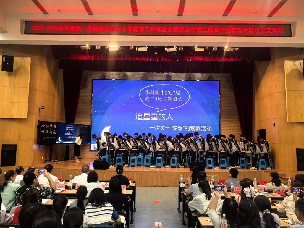 华科附中朱紫薇老师现场授课,展示以“梦想”为主题的班会课《追星星的人》,通过“寻梦—析梦—筑梦”三个环节,引导同学们将自己的梦想和实现中国梦联系起来,树立有担当、有奉献的理想并做出具体规划。武汉市功勋班主任吴家山中学尹炜老师对本节班会课进行专业点评,充分肯定了课堂设计的逻辑性与实效性,建议未来可进一步融入“小众梦想”案例、建立阶段性反思机制、加强家校协同。